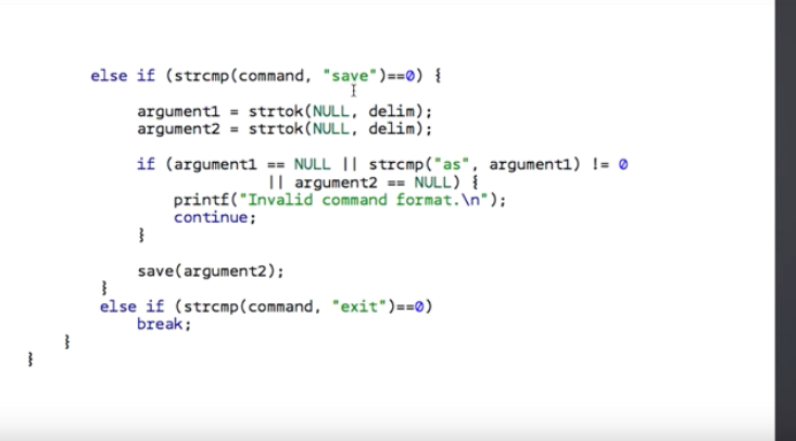 if( argument1 == NULL ) 이라는 것은, 사용자가 파일이름을 입력하지 않고 엔터를 친 것. 그래서 continue 로 다시 돌아가기.