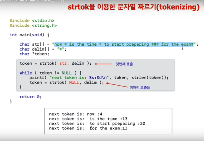 while 문은 token. 즉, 쪼개진 문자열들이 NULL 이 아닐 때까지 반복하는 것이다.