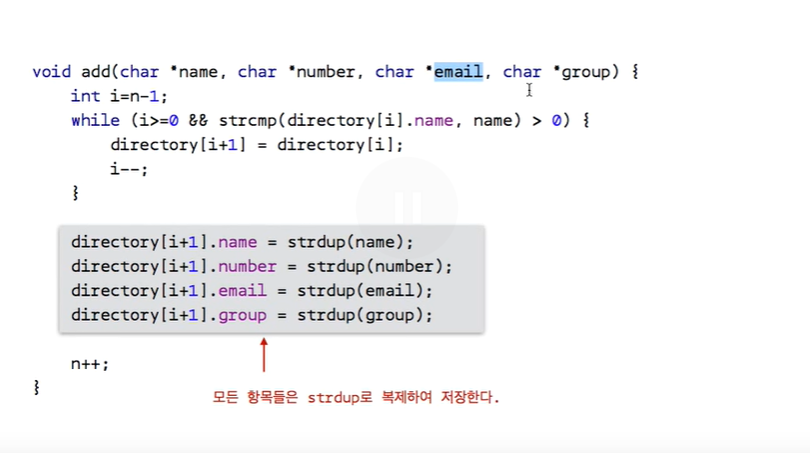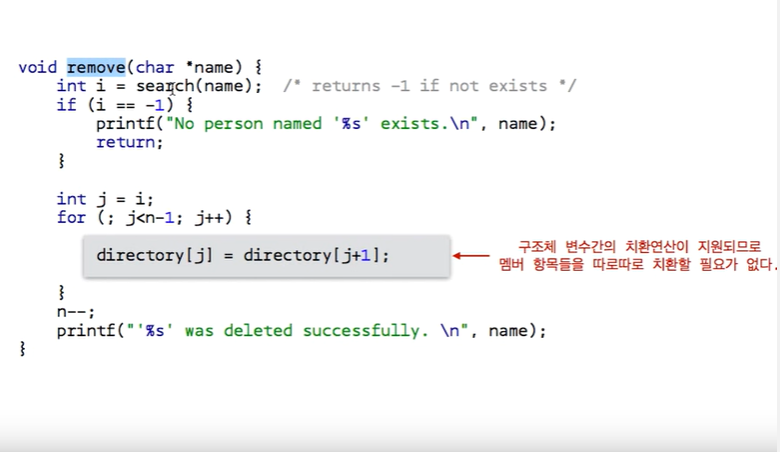 directory[ i +1 ] = directory [ i ] 라는 것은, 구조체도 = 를 통한 취합문이 가능하다는 것이다.
