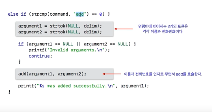add 명령어 같은 경우, 사람 이름과 전화번호부가 뒤따라야 한다.