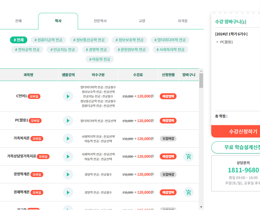 해당 기간에 수강 신청을 해야만 학자금 대출을 받아서 수강할 수 있다.