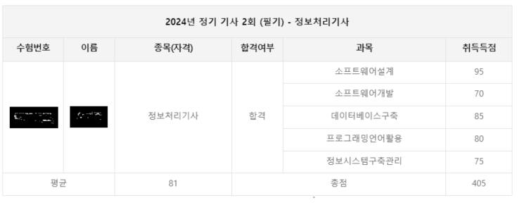 2024년 5월 10일 오전 8시40분에 정보처리기사 필기 시험을 보고 합격했다.